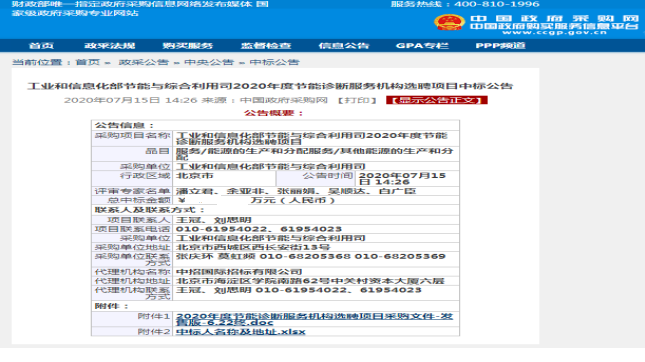 • 2020年度工業和信息化部節能和綜合利用司 工業節能診斷服務單位提供單位選聘